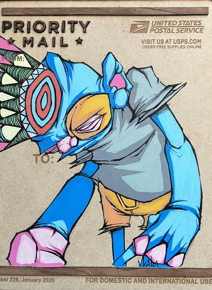 Hand painted character on 228 wood panel